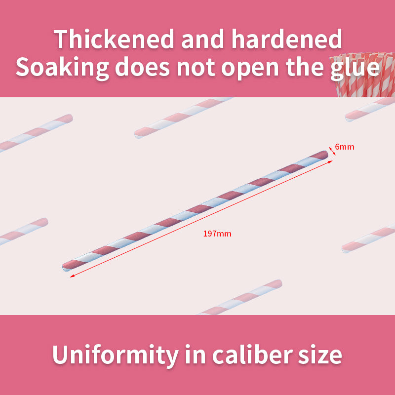 6*197mm Green Bull Straw - Radiant Scarlet Bliss: Eco-Friendly Light Red Streak Paper Straw Set a Pack of 100